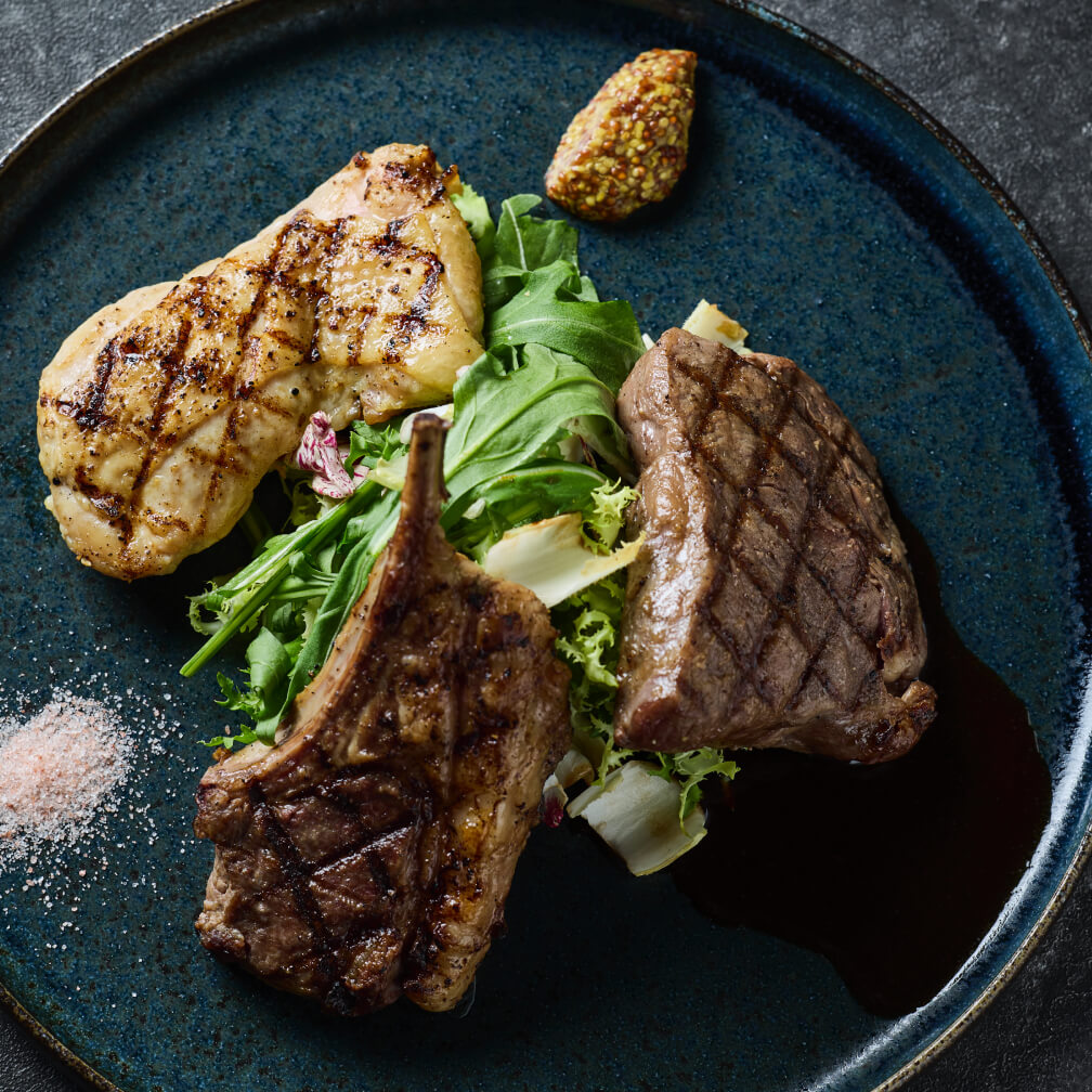 ¥6,800DetailGrilled platter of beef loin, lamb, and domestically produced branded chicken. Please enjoy the “Feast of Meat” together with pink rock salt, whole-grain mustard, and our special sauce.
