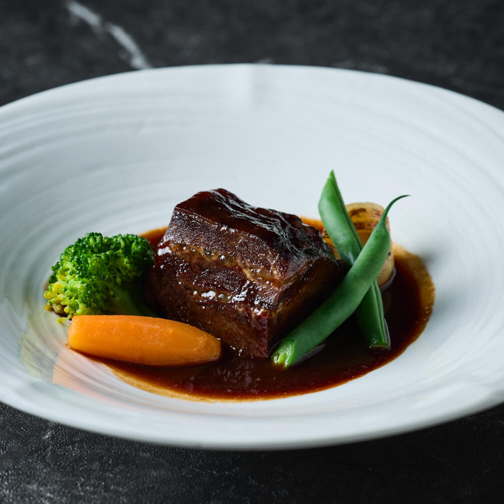 ¥3,500DetailSlow-cooked to tenderness in a rich sauce that preserves the flavor of red wine and brings out and harmonizes the umami of each ingredient, this dish is based on a traditional recipe yet expresses the chef's own flair.